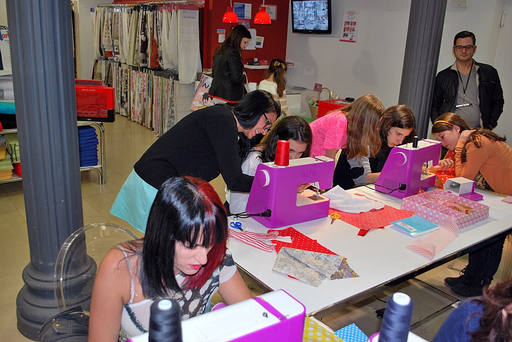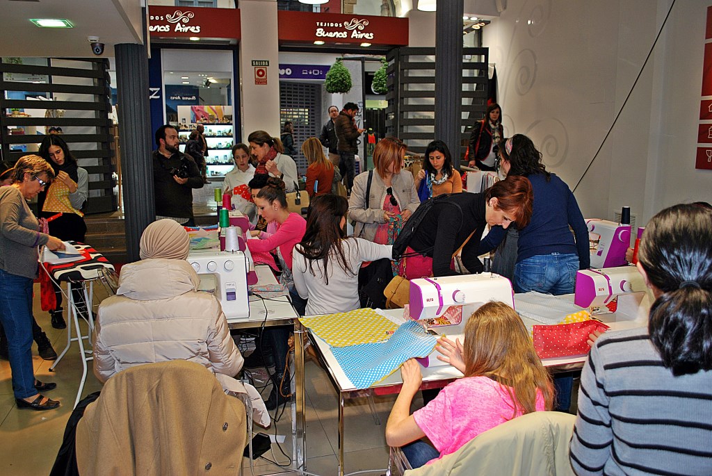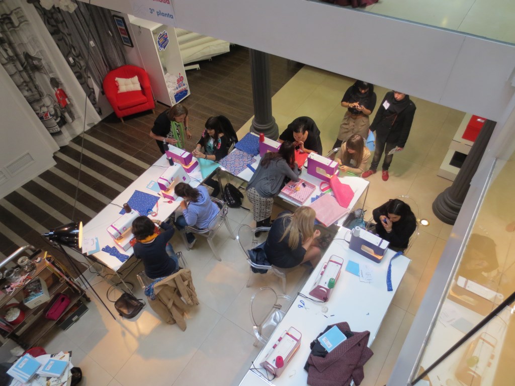 Nosotros poníamos las telas, el sitio y las mesas y Workshop facilitaba las máquinas de coser. Todas las personas que se acercaron a probar salieron encantadas de lo fácil y el buen resultado que obtuvieron.