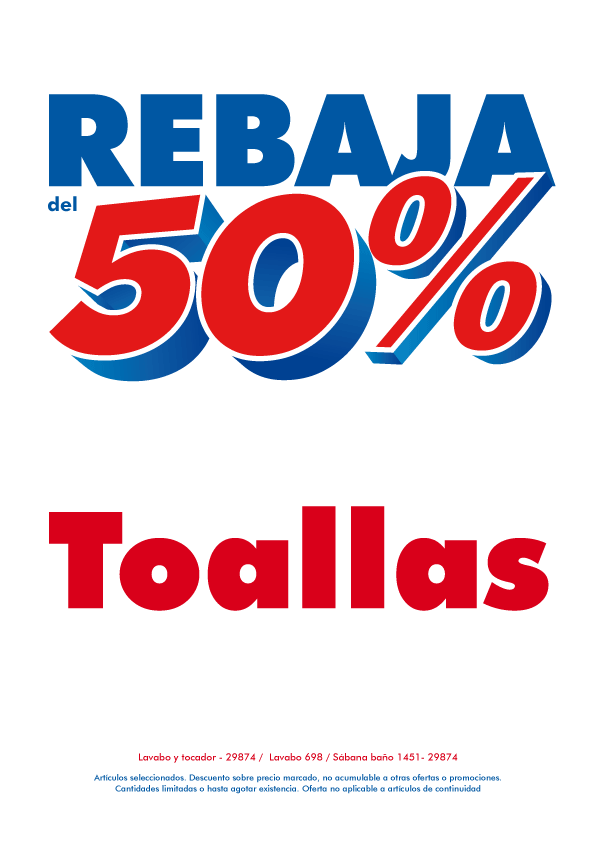 Como ya sabes en cada una de las tiendas, aparte de otras promociones, tienes una super-oferta cada semana. Ponemos en cada una de ellas un artículo diferente, al 50% de su precio normal.