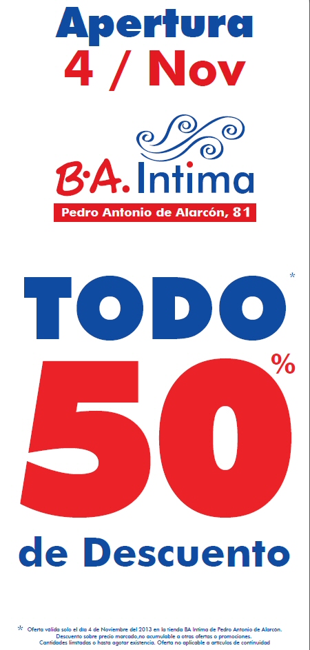 El día 4 de noviembre abriremos (D.m.) una nueva tienda en la calle Pedro Antonio de Alarcón 81. Se llamará B.A. Íntima.