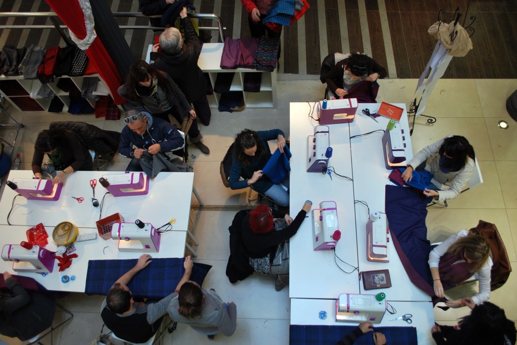 Gracias a la estupenda dirección de Lola Servillera y Mercedes Díaz de Workshop todo el taller transcurrió maravillosamente. También pusieron a disposición de los participantes las máquinas de coser que sirvieron para llevarlo a cabo.