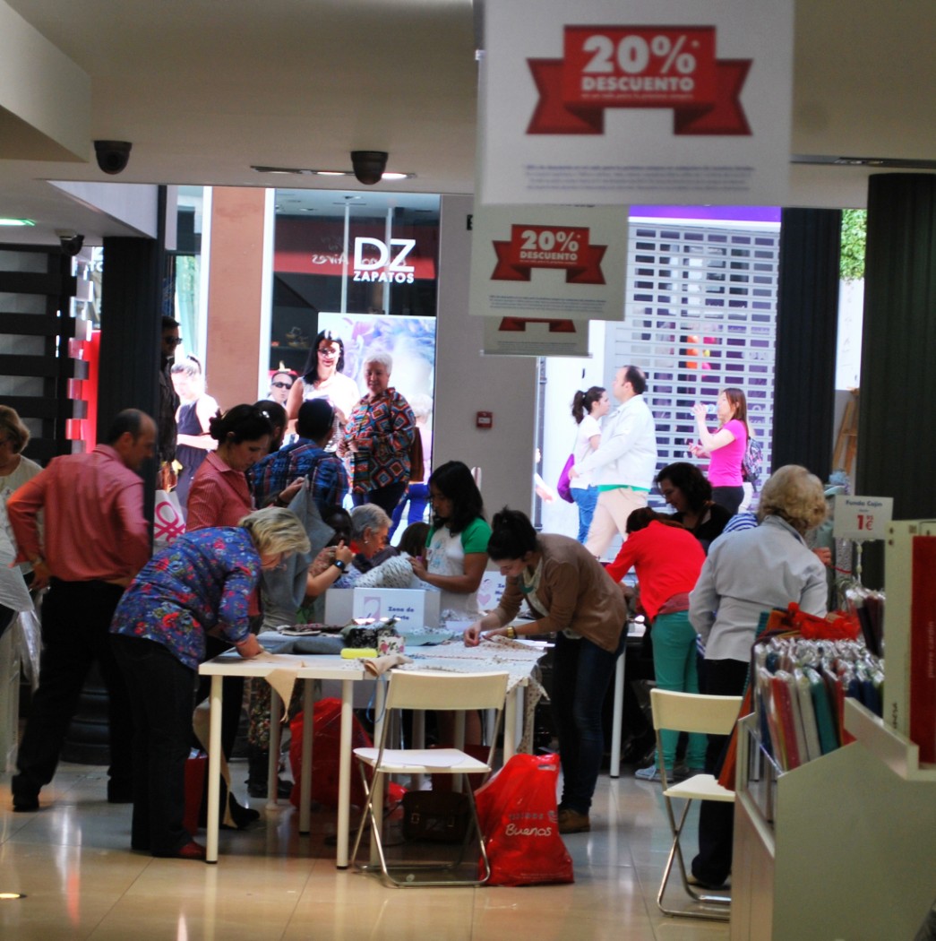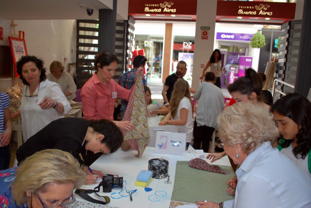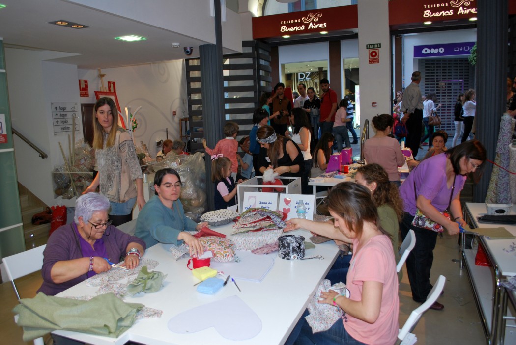 El perfil de los asistentes ha sido muy variado. Fue grato ver como niños se afanaban en realizar el trabajo que se le encargaba (marcar patrón, rellenar corazones, rellenar notas de buenos deseos,…); asistieron también señoras mayores que guiaban en la costura a otras más jóvenes, chicos y chicas que se unían al grupo colaborando en la cadena. Personas que habían padecido la enfermedad, como por ejemplo una chica llamada Rosario que era Argentina y que ha superado el cáncer de pecho y que se hallaba en Granada en su primer viaje después de la enfermedad, se emocionó mucho y se incorporó al grupo durante toda la mañana.
