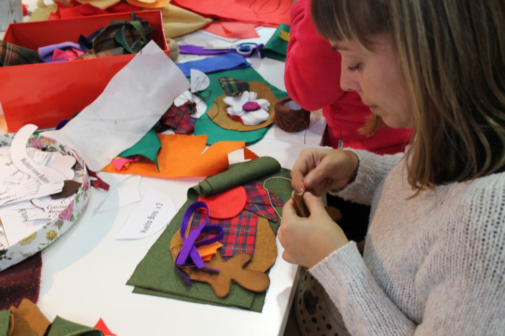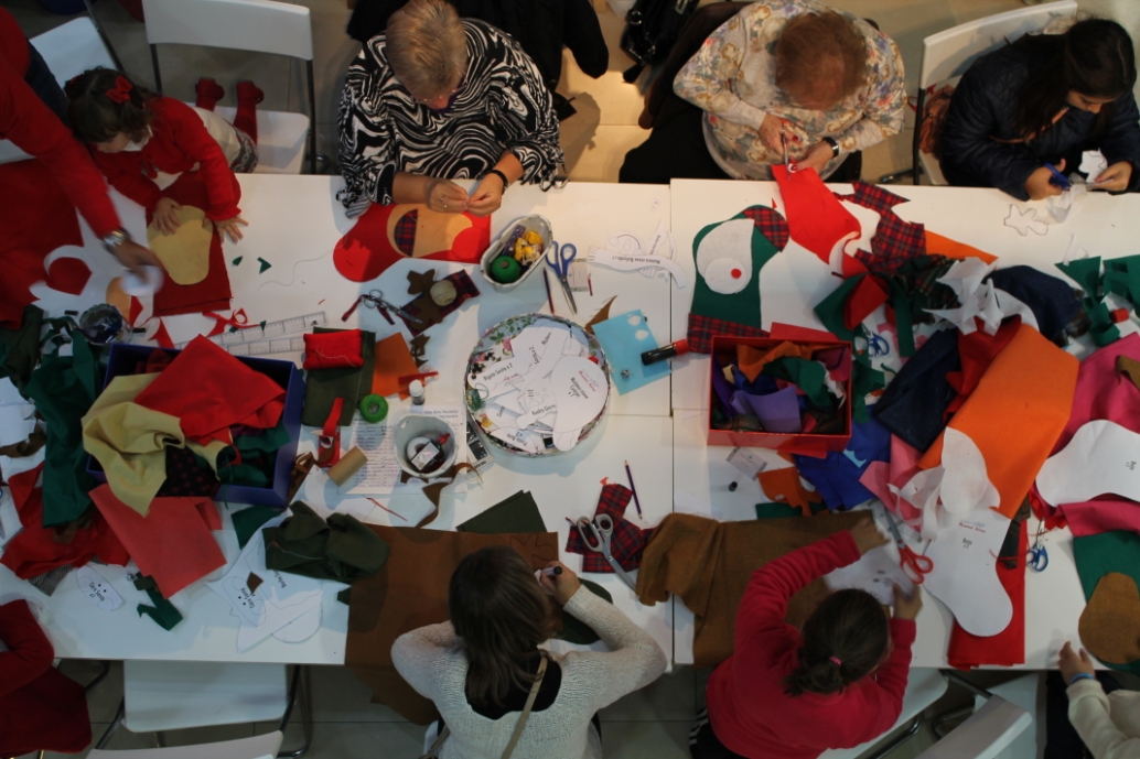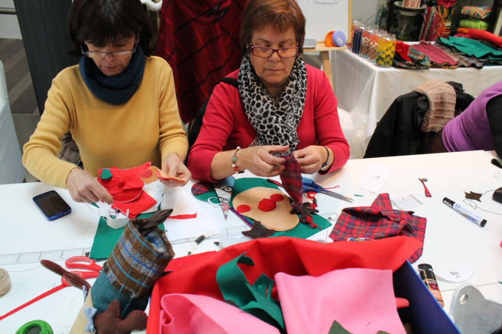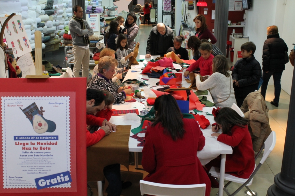 Como nota curiosa, por la tarde tuvimos a una chica de Canadá que le encantó la actividad y que quiere hacer un montón de botas para regalar a su familia, una señora de Barcelona con su pequeña, que ha disfrutado de lo lindo y que subirá su bota terminada a la pagina que tenemos para subir las creaciones que queramos , dos señoras que son asiduas a nuestros talleres y que disfrutan del clima tan dinámico que se crea, grupos de amigas que se divierten haciendo algo creativo…..muchas risas y buen ambiente.