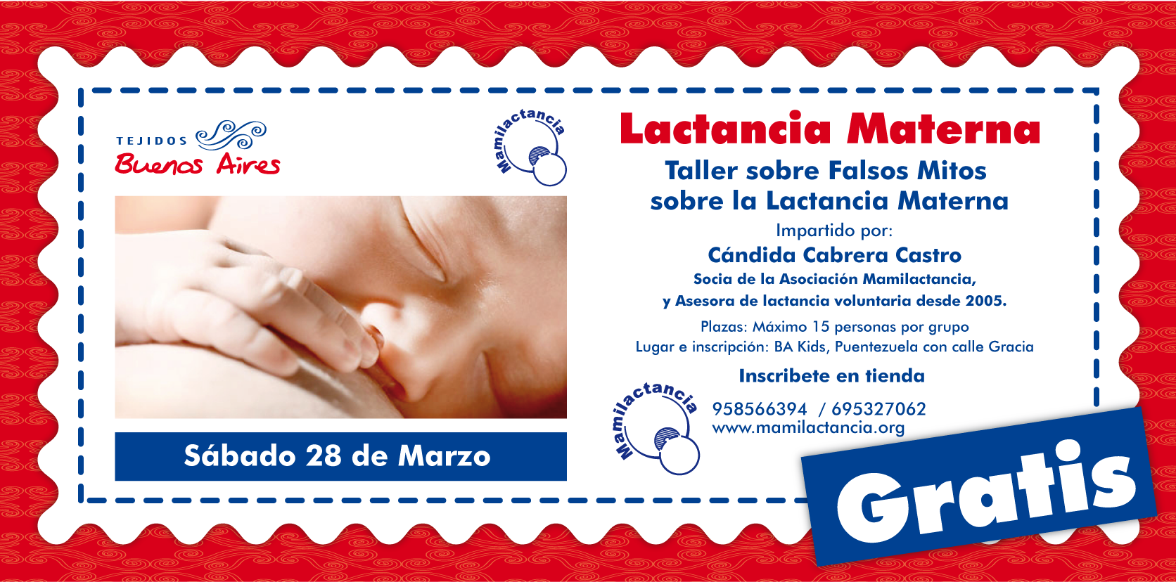Cándida Cabrera de la Asociación Mamilactancia, se encargará de conducir el taller y resolver las dudas que se presenten a lo largo del mismo.