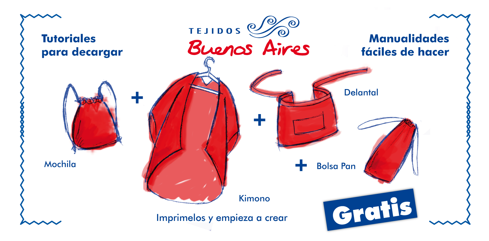 Pincha en cada enlace para descargar patrón con instrucciones ( tutorial) para poder hacer una Bolsa de Pan, un Kimono, una Mochila y un Delantal: