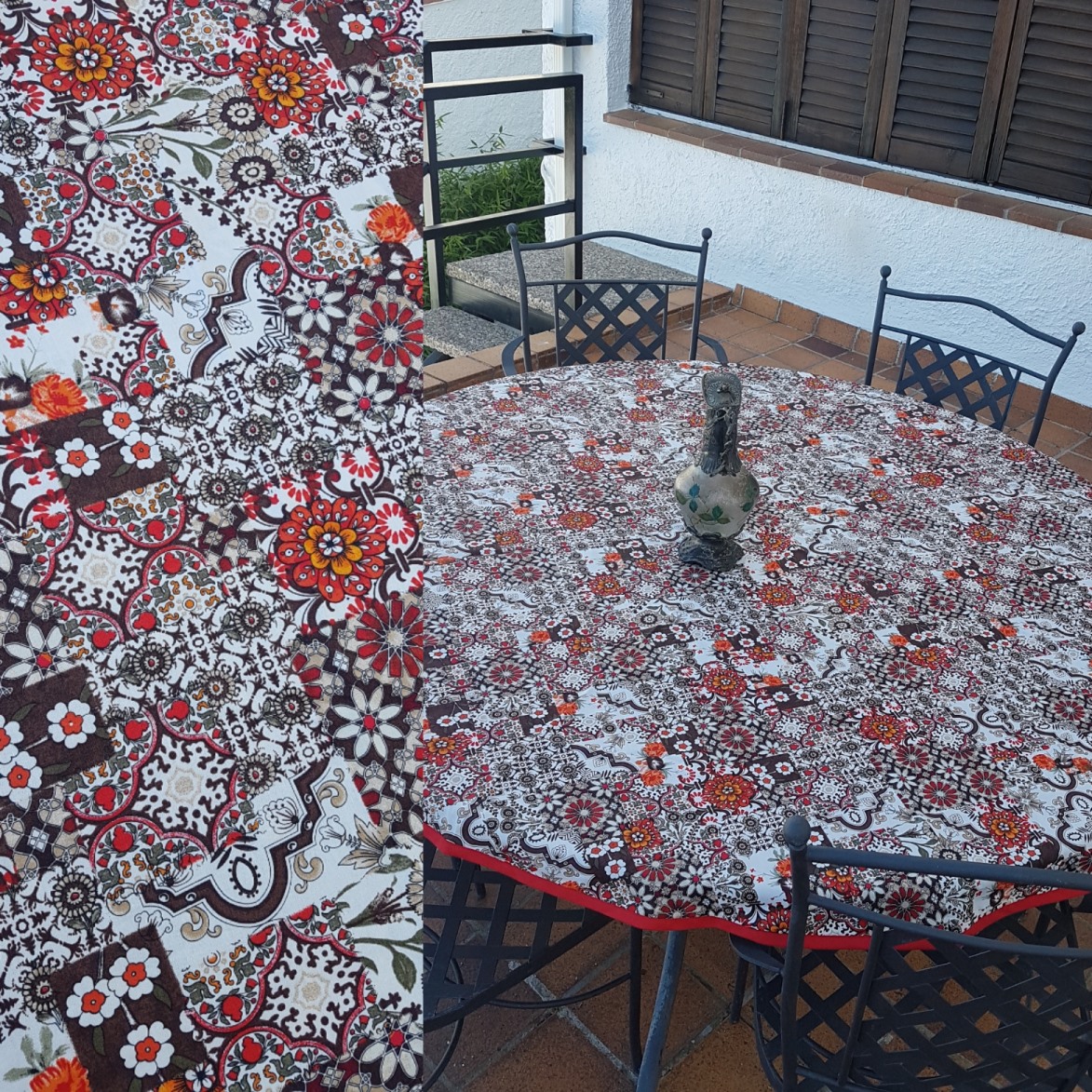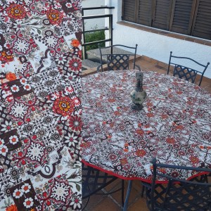 Rescatamos del correo esta fantástica foto que nos enviaba Cristina que ha hecho un mantel con una tela que compró en una visita a nuestra ciudad y buscaba una tela como recuerdo.