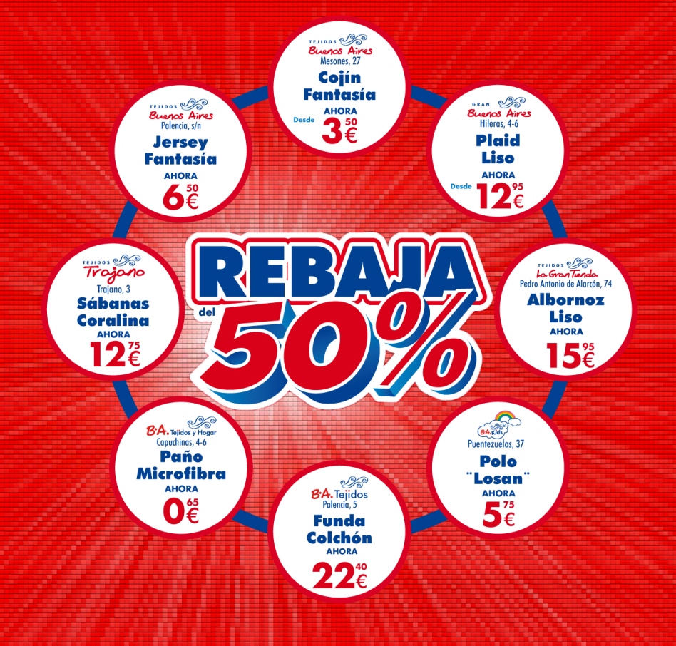 Aparte de las promociones y ofertas que habitualmente te ofrecemos, en cada tienda hay un artículo diferente cada semana, al que le hacemos, sólo durante una semana, una rebaja del 50%.