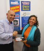 (0)Este sábado pasado tuvimos la oportunidad de conocer a la afortuna ganadora del sorteo de la máquina de coser portátil. Nuestro compañero José Luis hizo los honores y en la imagen siguientelo vemos junto con la feliz ganadora en el momento que tuvo lugar la entrega.